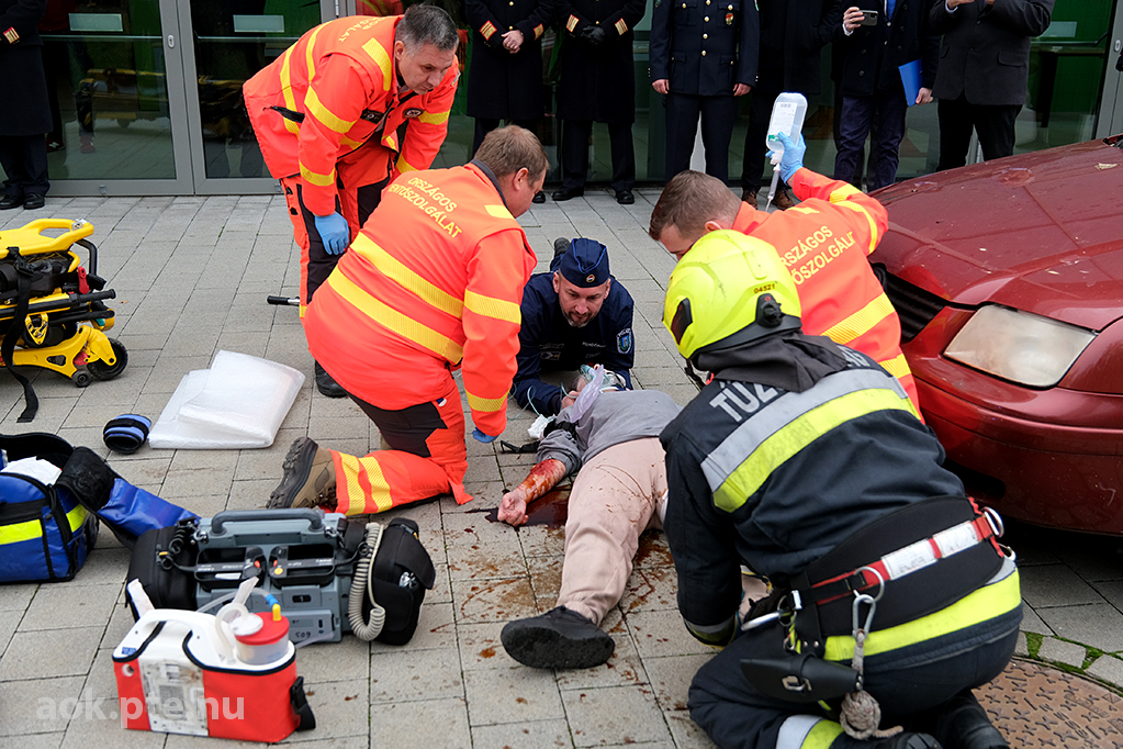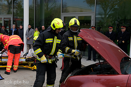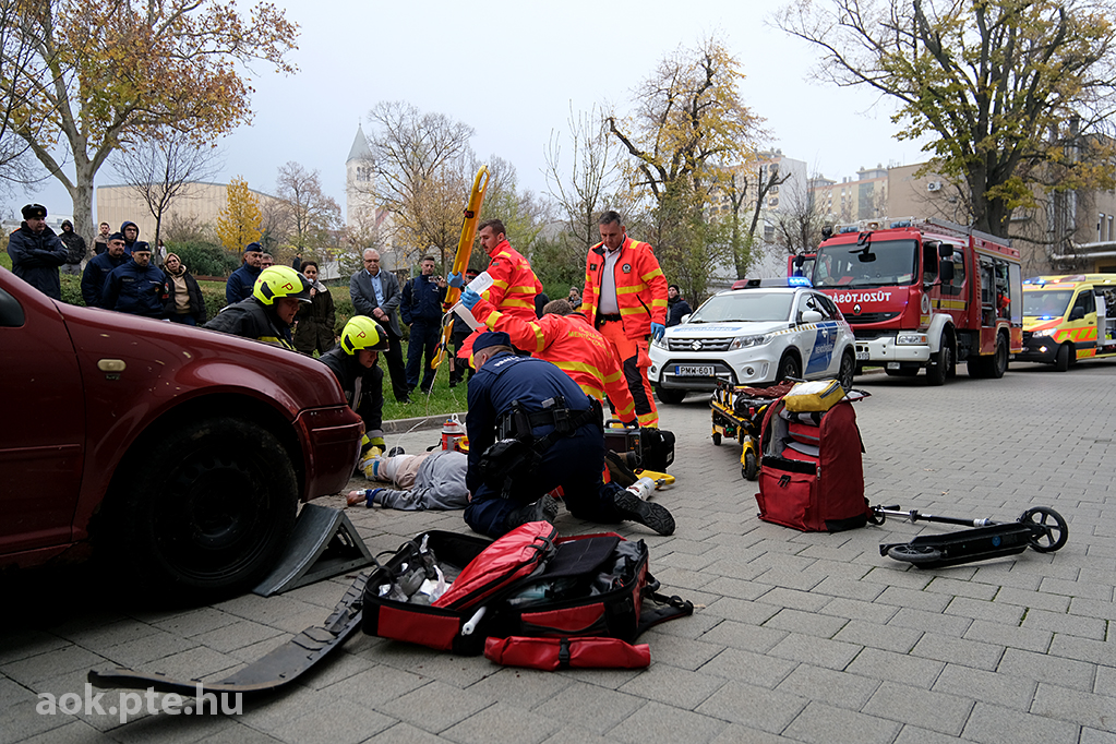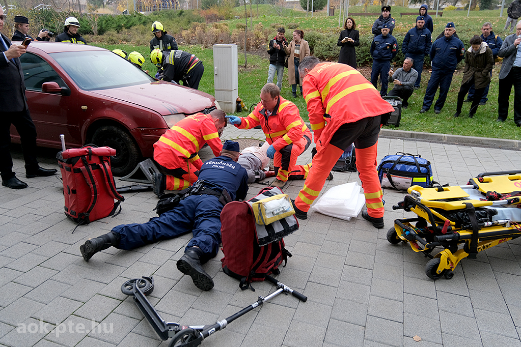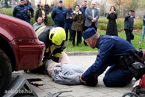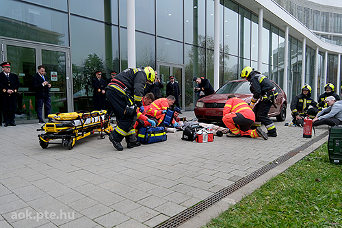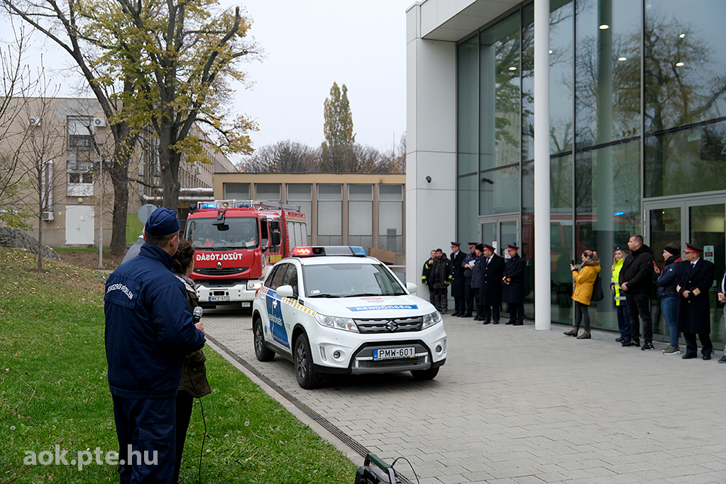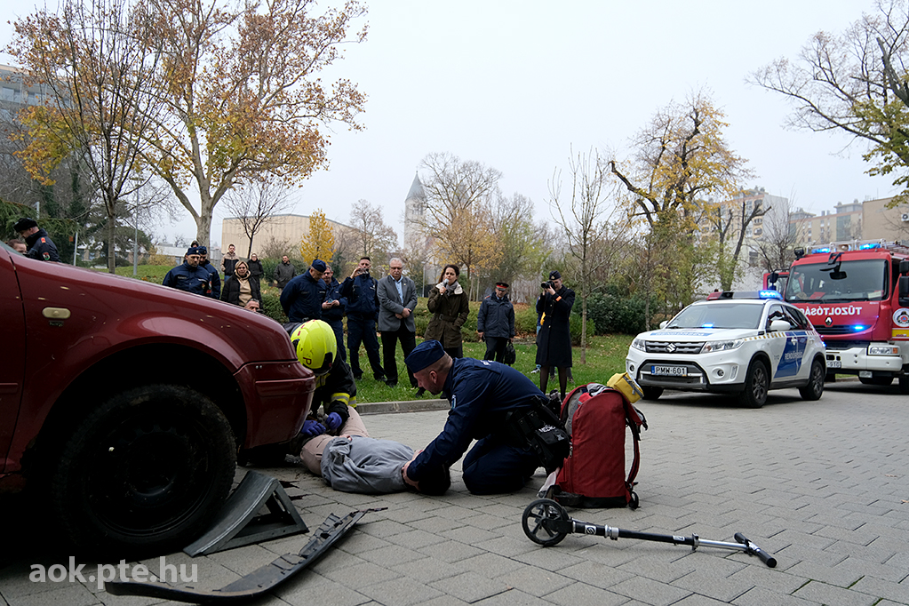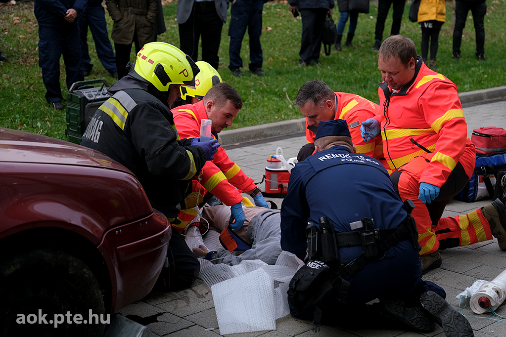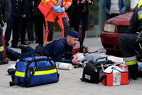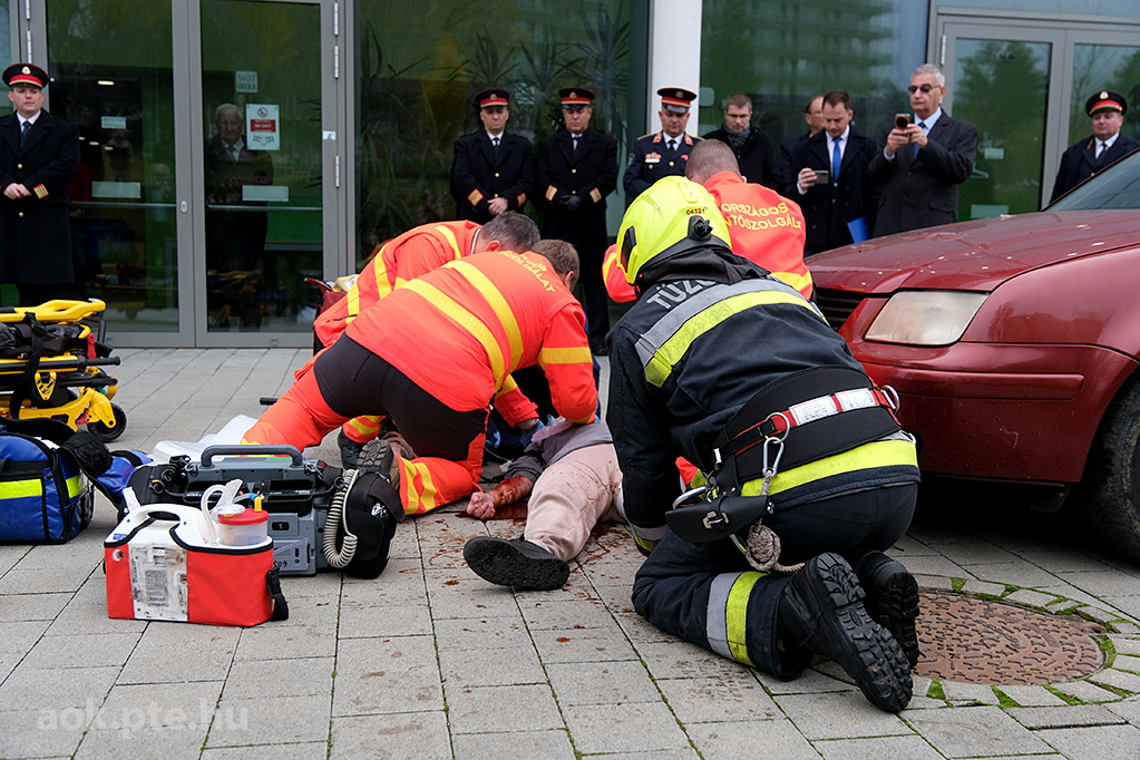 „A kárhelyszíni életmentés folyamata – az elmúlt évek tapasztalatai és fejlesztései” címmel rendezett bemutató gyakorlatot és konferenciát november 20-án a Baranya Vármegyei Katasztrófavédelmi Igazgatóság és a PTE ÁOK Orvosi Népegészségtani Intézete a pécsi orvoskaron. A rendvédelmi szervek együttműködésének helyszíni szemléltetése és eszközkiállítása után előadások hangzottak el a kárhelyszíni életmentés aspektusairól, az elmúlt évek tapasztalatairól, valamint az együttműködés további lehetőségeiről is.
